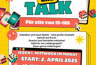 Du spielst gerne Karten- oder Gesellschaftsspiele? Hast Lust auf Klassiker oder willst mal was Neues ausprobieren? Immer am ersten Mittwoch im Monat treffen wir uns zu "Play & Talk" im Gemeindehaus - der Joker wäre Dein Lieblingsspiel!