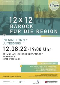 Am Freitag, den 12.8.2022, um 19 Uhr wird in der St. Michaelis Kirche in Bissendorf ein besonderes Konzerterlebnis geboten. Unter dem Motto „Evening Hymn/Luitesong “ werden Mareke Freudenberg (Mezzosopran) und Daniel Seminara (Laute), beide Mitglieder des Hannoveraner Ensembles für Alte Musik Filum, ausgewählte Gesangs- und Instrumentalstücke von John Dowland, Henry Purcell und Claudio Monteverdi präsentieren.