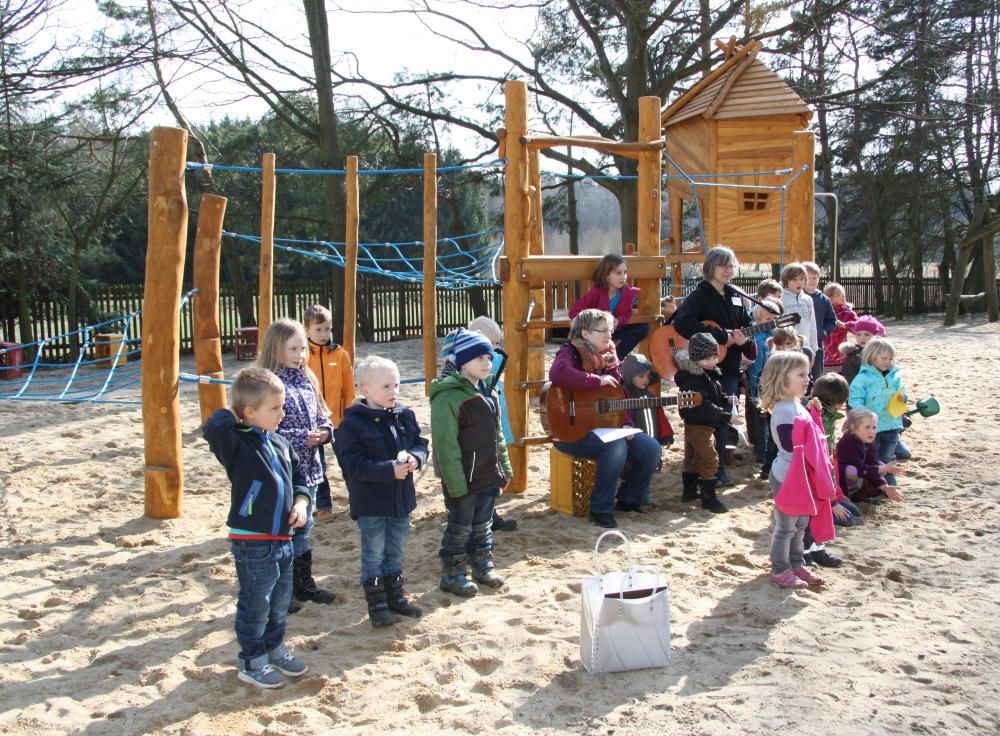 Ein ungewohntes Bild bot sich am 2. Mai rund um die St. Michaelis-Kirche in Bissendorf: 115 Kinder in gelben Warnwesten sitzen in kleinen Gruppen auf dem Rasen oder toben über das Gelände. Pastorin Wibke Lonkwitz und Pastor Thorsten Buck hatten die beiden evangelischen Kindertagesstätten aus Bissendorf zur Kinderkirche eingeladen, die Leiterinnen Heike Eggers und Heike Geng-Matthiesen von den Kitas im Kranichweg und Güldenen Winkel machten sich mitsamt Erzieherinnen, Krippenkindern, Bollerwagen und Kindern gerne auf den Weg.
